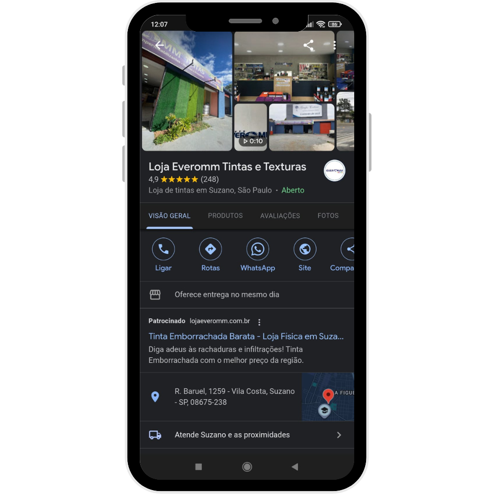 EXCELENTE Com base em 248 avaliações Publicado em Leticia BarretoTrustindex verifica se a fonte original da avaliação é Google. Pessoal excelente, vendedor atencioso , que escutou e atendeu as minhas necessidades e expectativas , além do preços e a rapidez no preparo e entrega no produto.Publicado em Odnilo RomaniniTrustindex verifica se a fonte original da avaliação é Google. Loja de Tintas com produtos excelentes e ótimo atendimento. Parabéns!Publicado em FláviaTrustindex verifica se a fonte original da avaliação é Google. Excelente atendimento, vendedor atencioso q busca o melhor p o cliente. Fiquei muito satisfeita.Publicado em Zeti SantosTrustindex verifica se a fonte original da avaliação é Google. Serviço muito bom e eficientePublicado em leandrobersot@hotmail.com BersotTrustindex verifica se a fonte original da avaliação é Google. Atendimento muito bom, Eduardo bem prestativo explica muito bem,sanou todas as minhas dúvidas, recomendoPublicado em Cris SimioniTrustindex verifica se a fonte original da avaliação é Google. Preço justo, ótimo atendimento . Vendedor Eduardo muito atencioso. Recomendo!!!!!Publicado em Gabriela PaesTrustindex verifica se a fonte original da avaliação é Google. Muito bom, os meninos são muito atencioso.Publicado em Julio PinturasTrustindex verifica se a fonte original da avaliação é Google. Ótimas tintas e o atendimento maravilhoso .... Super recomendo.....Publicado em Lucelia santos PaixaoTrustindex verifica se a fonte original da avaliação é Google. Ótimos produtos e bom atendimento . Recomendo.Publicado em Edjania SouzaTrustindex verifica se a fonte original da avaliação é Google. Ótimo atendimento, fácil acesso, com estacionamento, fabricação própria e preço imperdível. AMEI ❤️ ❤️ ❤️ ❤️ ❤️